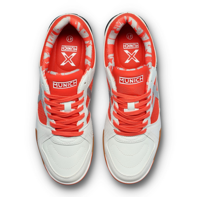La One Indoor es la zapatilla de fútbol sala fabricada con base de rejilla y refuerzos de material sintético. Incorpora refuerzo de TPU en la puntera para una mayor solidez, contundencia y firmeza en el golpeo.