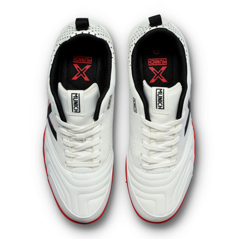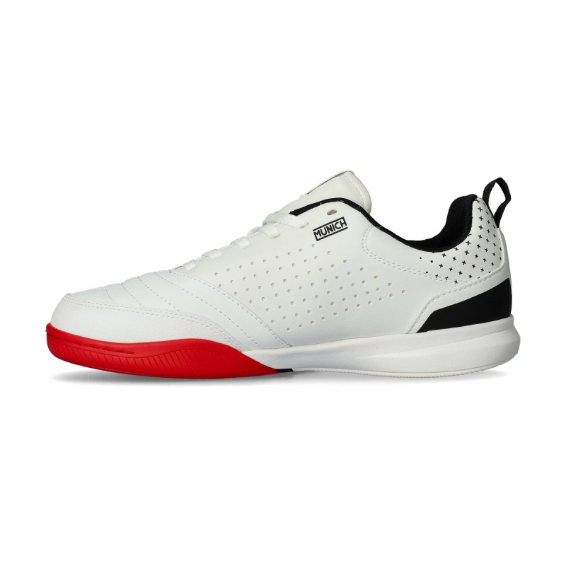 Zapatilla de fútbol sala Rondito en color gris. El diseño vanguardista de Rondito captura la esencia de la velocidad en cada línea y detalle. Inspirado en el futuro del juego, el aspecto aerodinámico no solo es visualmente impactante, sino que también mejora la experiencia en la pista al imitar la velocidad y agilidad que definen el juego de fútbol sala de élite.