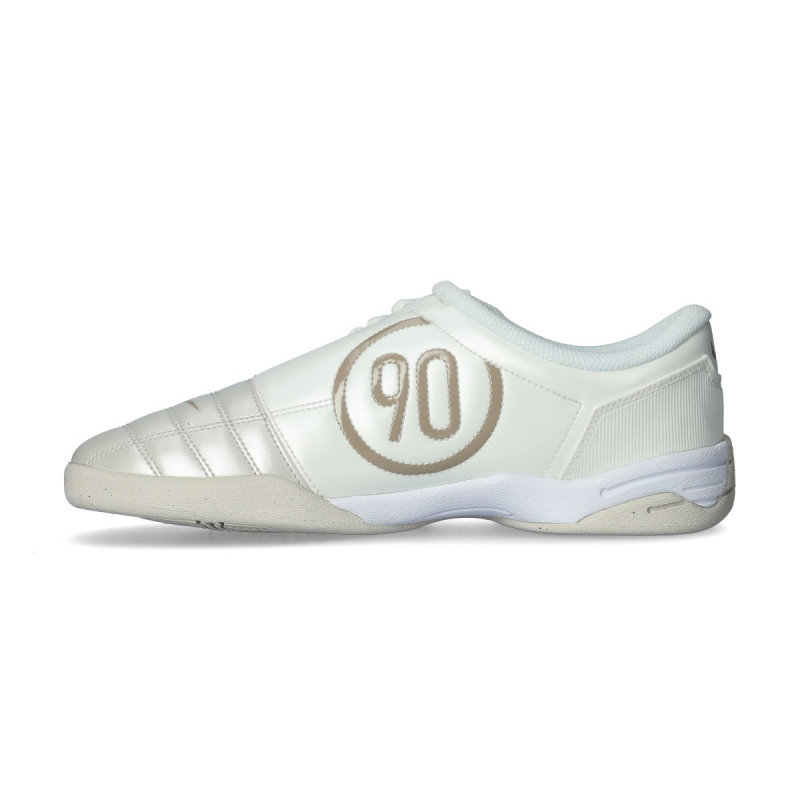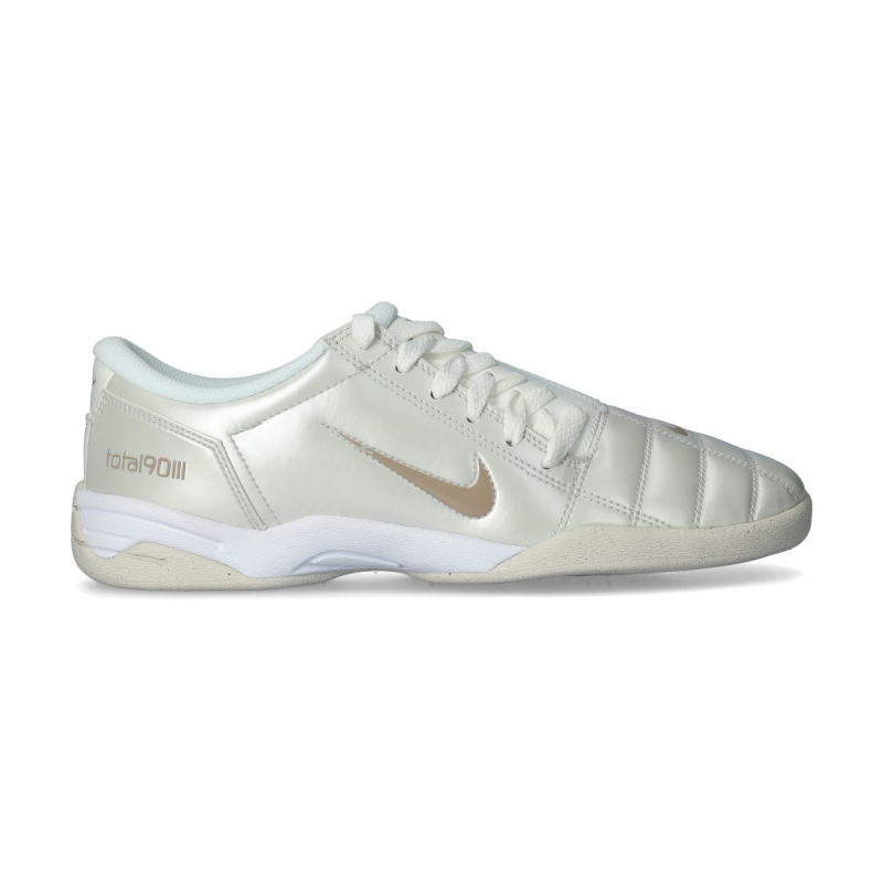 Las Total 90 de los 2000 dejaron huella en el mundo del fútbol. Este modelo vuelve al más puro estilo deportivo con una versión actualizada para la calle. Este innovador diseño prescinde de los tacos e incorpora una suela plana de goma, y mantiene la parte superior acolchada y los cordones asimétricos de las originales. El acabado brillante en metallic silver y negro se combina con detalles en university red para crear unas zapatillas llamativas que no pasan desapercibidas.