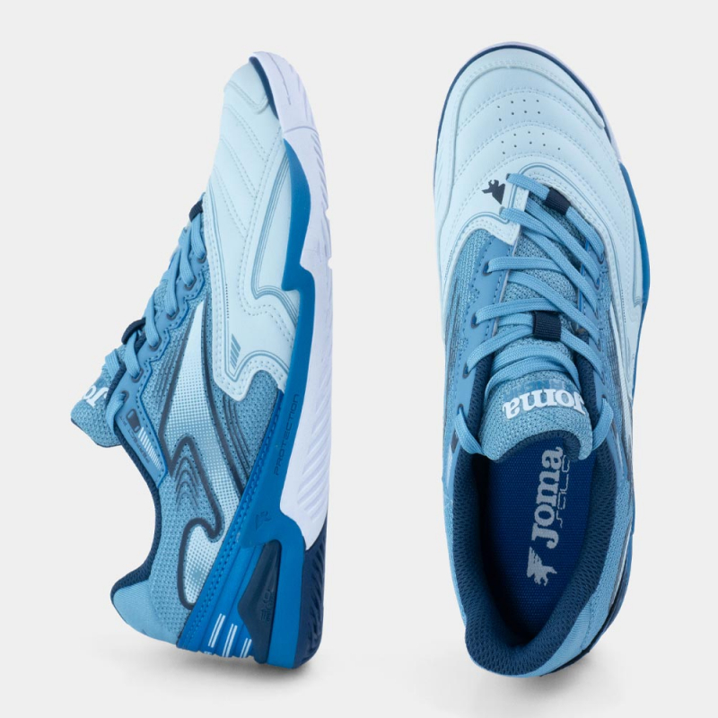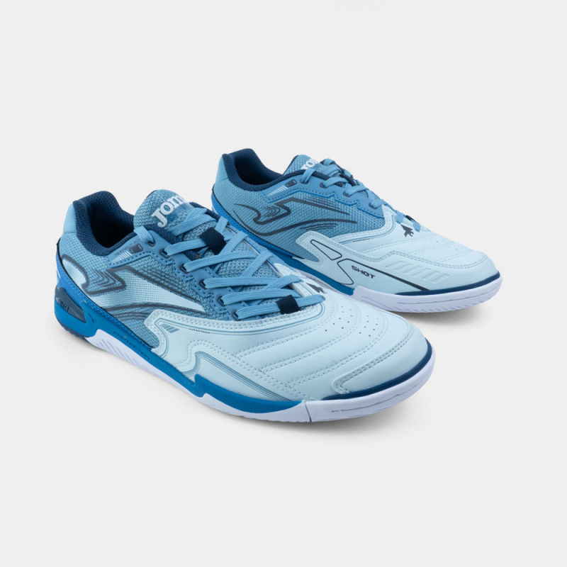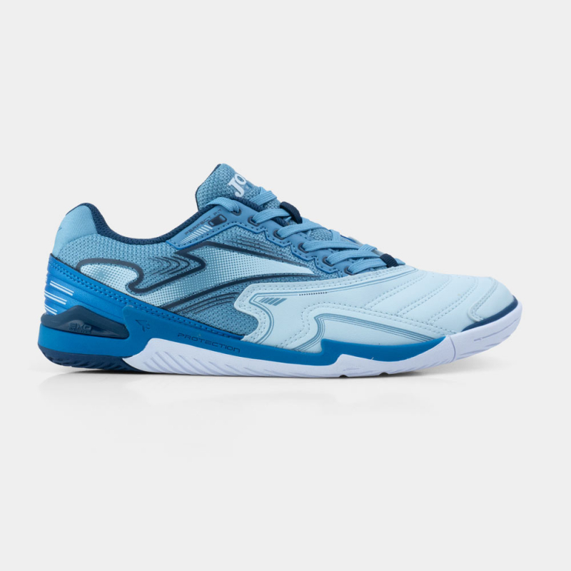 Zapatillas de fútbol sala de la línea Cancha de Joma, para adulto y de color negro y blanco. Contrucción super ligera con sólo 255 gramos de peso. Superficie en microfibra transpirable con inserciones de TPU en las zonas más expuestas. Plantilla de espuma EVA termoconformada y palmilla de EVA natural de 2mm. Mediasuela de perfil bajo. Suela de caucho para jugar en pista interior y exterior.