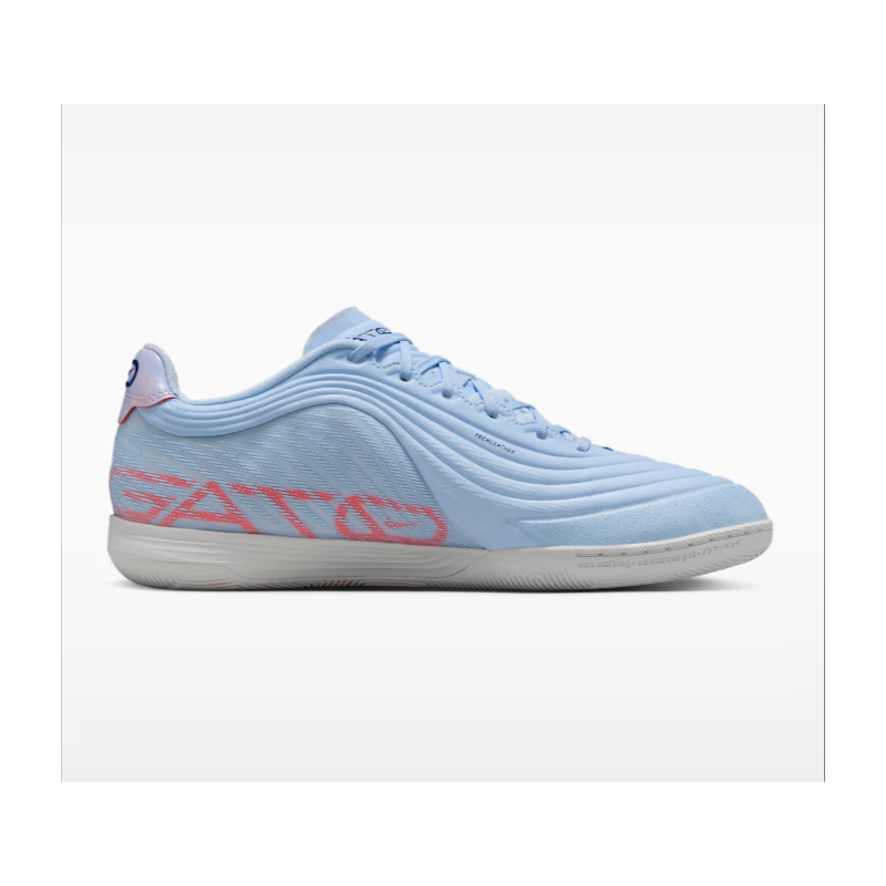 Zapatilla de fútbol sala Nike React Gato LE. Zapatillas de hilo para utilizar en pistas interiores o exteriores poco abrasivas. Las almohadillas flexibles aumentan el contacto en el balón y la amortiguación Nike React te mantiene en movimiento mientras juegas y haces recortes por el campo.